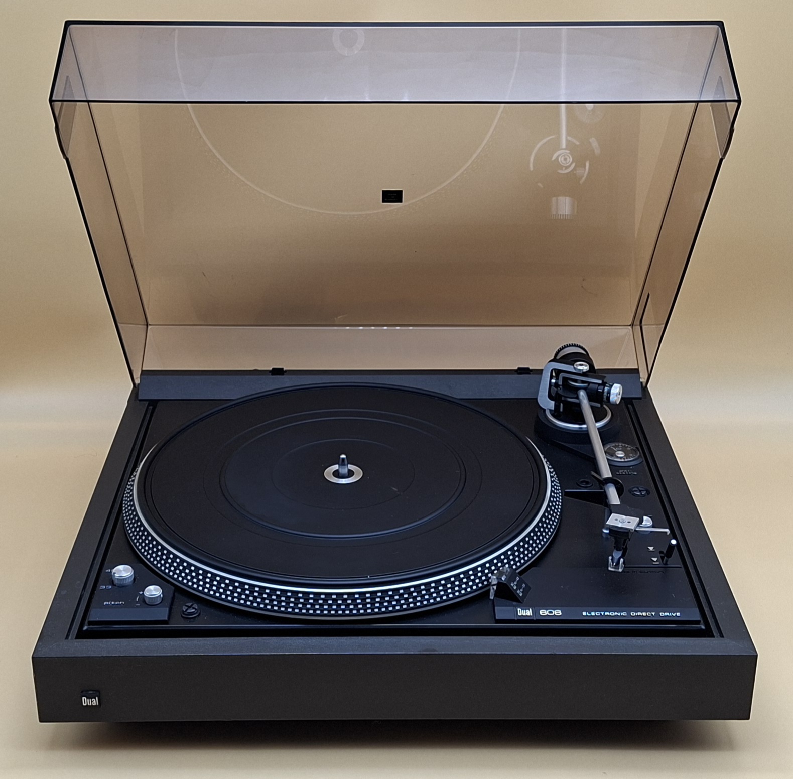 Hi-Fi Magnet System ULM55 mit DN155 Tonnadel. Gold-Chinch NF Kabel. Halbautomat. 33/45 RPM. Pitch Control. Leuchtstroboskop